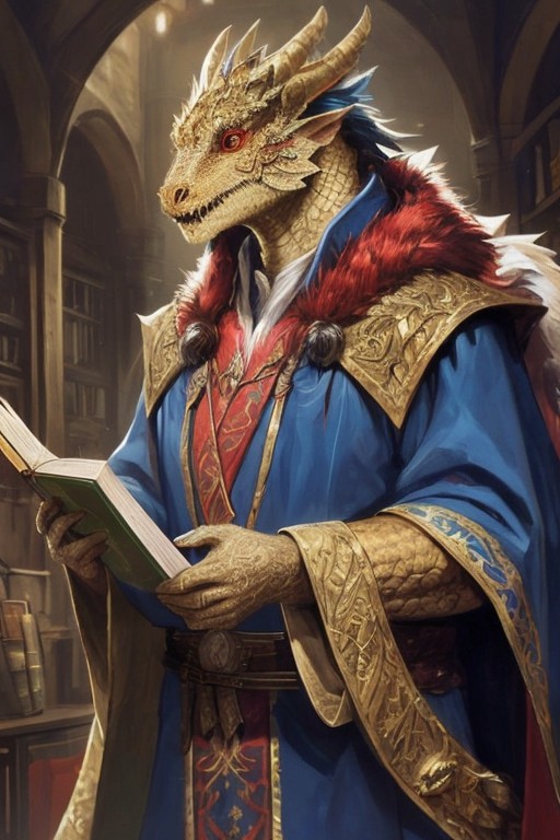 fur inlay of cloak, fur collar, brass scales with few red scales sporadically, most brass scales,