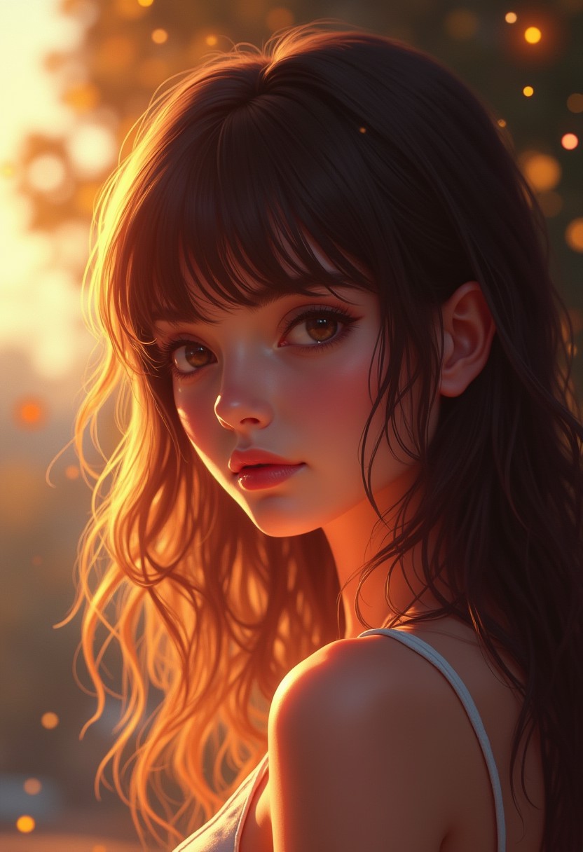 hyperrealistic digital painting by J. Scott Campbell and Jeremiah Ketner and Thomas Saliot, shallow depth of field, realistic anime, bokeh, woman