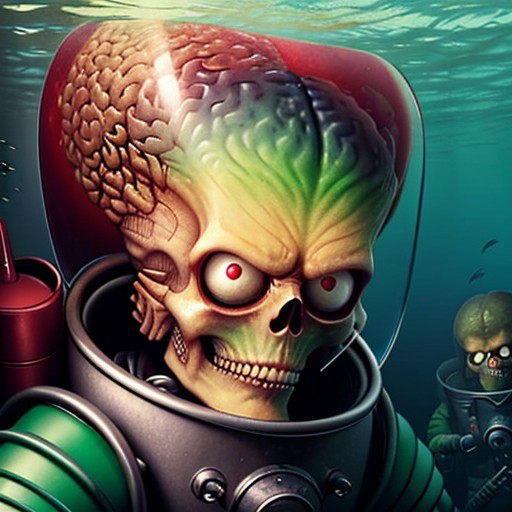 <lora:Mars Attacks_v1-000009:1> masterpiece, photorealistic highly detailed 8k Extreme Close-Up of a Subject's Eyes, best cinematic quality, volumetric lighting, msttck, green skin, red eyes, astronaut helmet, holding weapon, gun, Underwater Caves full of msttck around, msttck, easynegative, NEG_EMBED_STABLE_YOGI_V3,