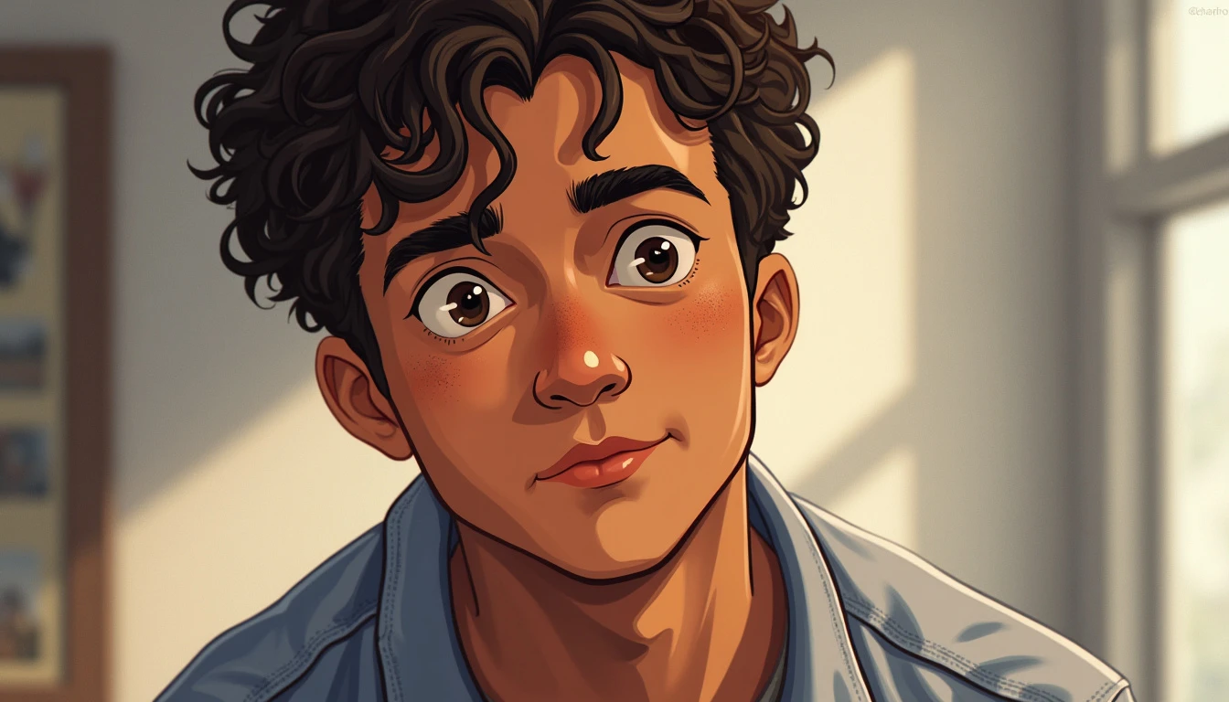 "A hyperrealistic photograph of a young mixed-race man’s face, captured with a 50mm lens. The image should look completely natural, showcasing the fine details of his light brown skin, with visible pores, slight imperfections, and natural variations in tone. His skin appears lifelike, with subtle signs of natural oiliness and texture that mimic real human skin. The face is in sharp focus, with the background softly blurred to emphasize the realism of his facial features. The lighting is natural and balanced, enhancing the authenticity of the image without creating an artificial or painterly effect. The man has a friendly expression, with curly hair, a broad nose, and a few freckles across his cheeks."