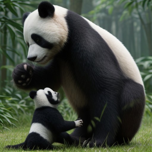 Cat, Giant Panda, (Cat and GIant Panda), 2animals, duo