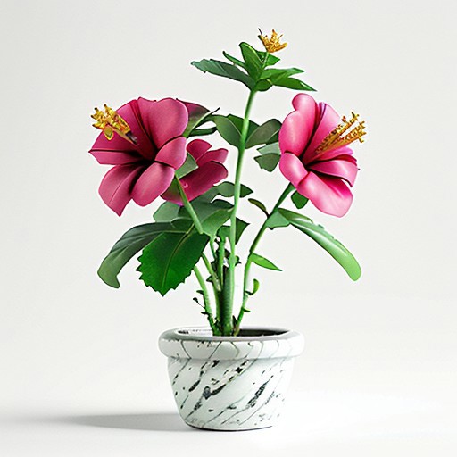light and space style {best quality, high resolution, realistic, dynamic angle, busy marble, hyperdetailed hibiscus flower in a pot, (white background} . perceptual phenomena, immersive, detailed