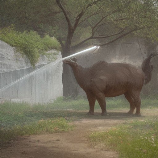 Create a picture of a giant watering can pouring a city-sized garden onto a barren planet, photo realistic, 4k