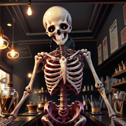 skeleton barista working a busy shift, Skeleton_style, Skeleton