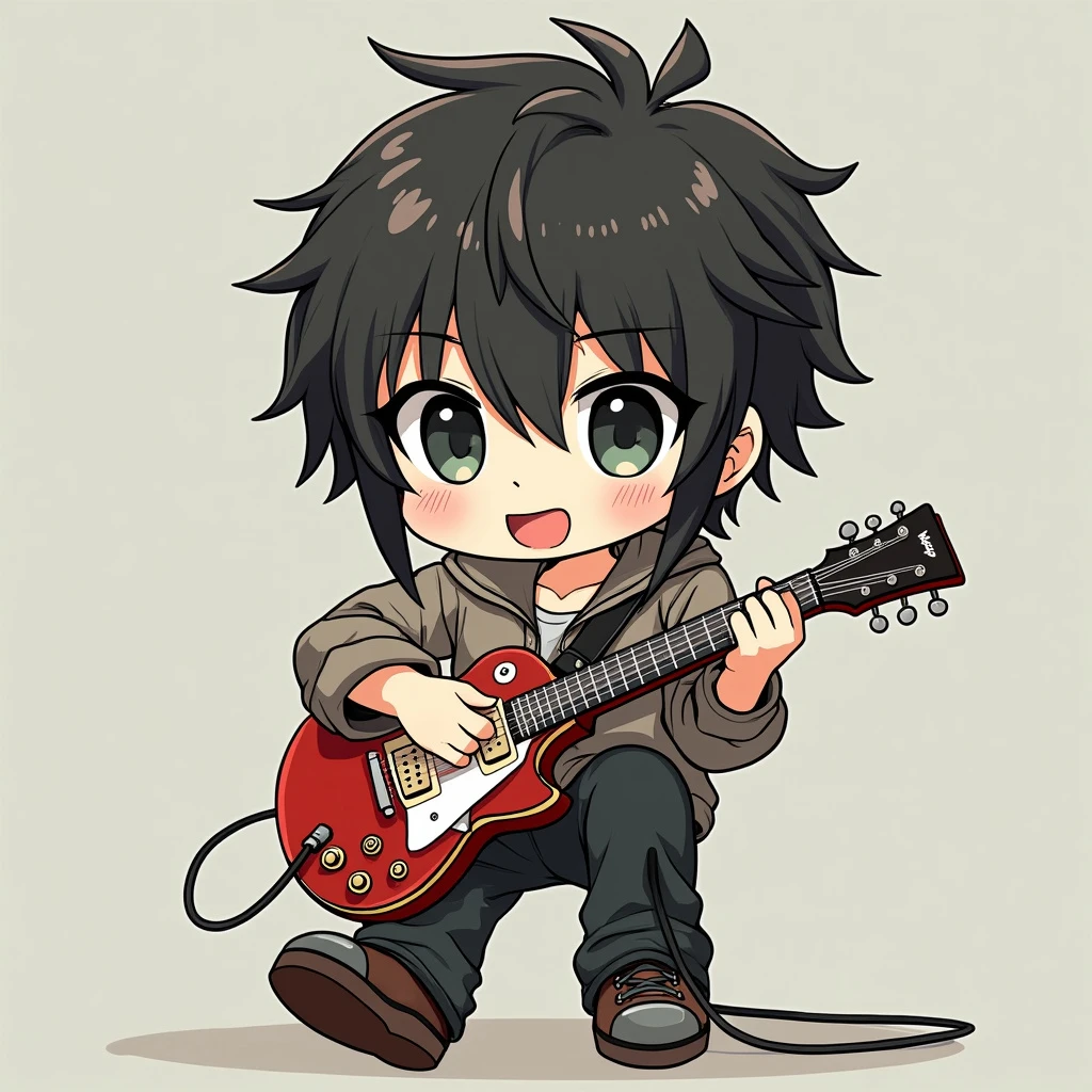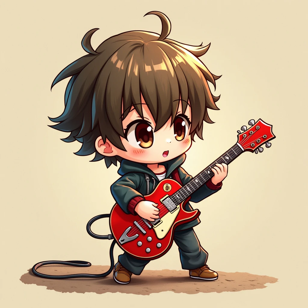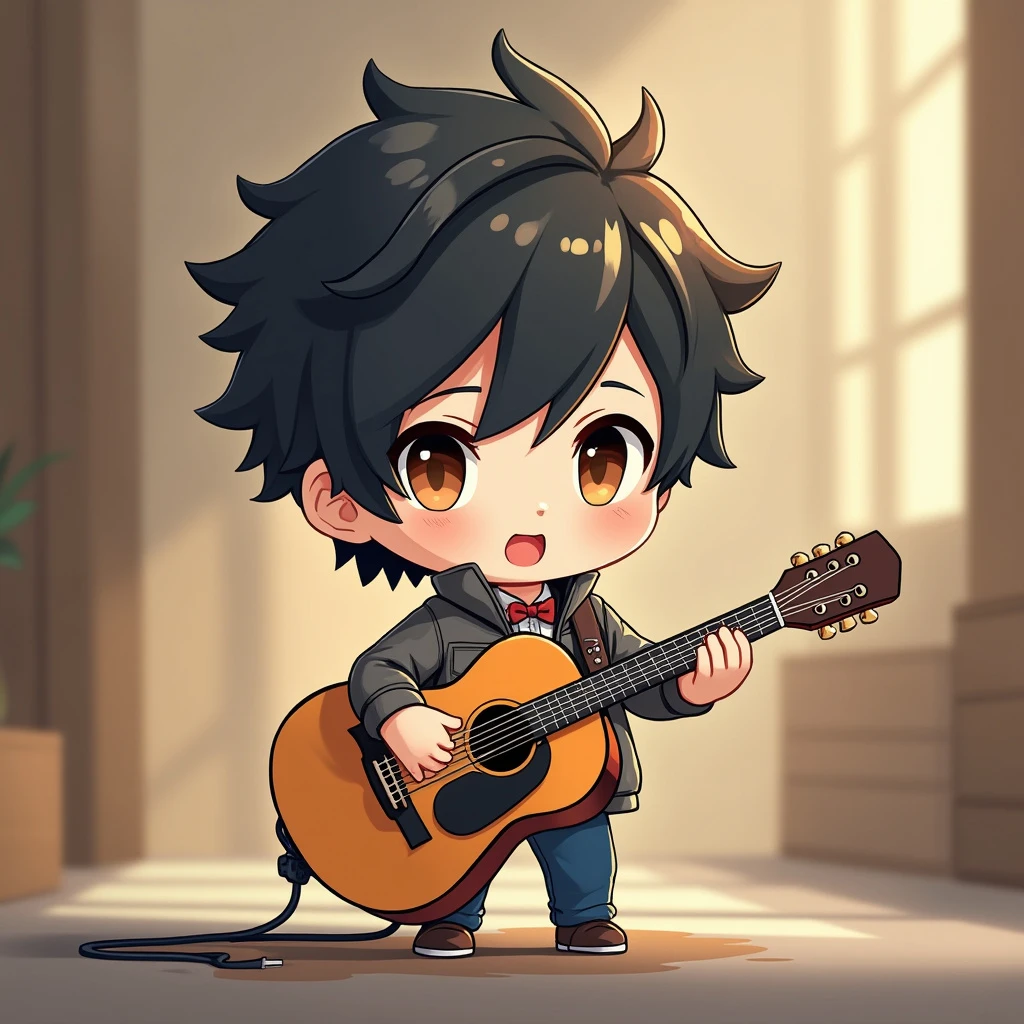 3D Chibi musician playing a tiny guitar, Ultra realistic.