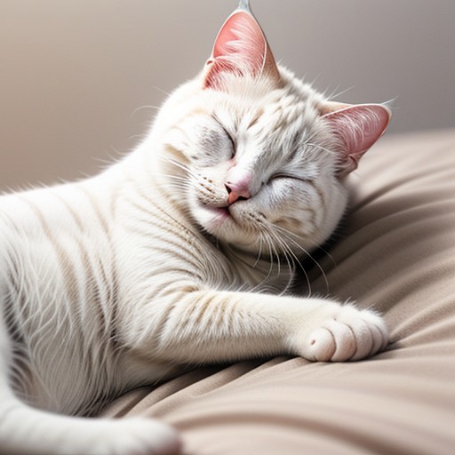 Capture a full hyper-realistic photograph of an adorable white cat sleeping, face, belly up, cutest in civitai, chubby cat,