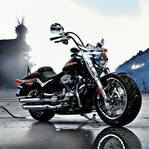 Highest quality,ultra-high definition,masterpieces,8k quality,masterpiece, blue motor vehicle,blue motorcycle, blue Harley motorcycle,outdoors,round,no no humans, fire, burning, skull headlights, spikes, <lora:motor_20240726162625:0.6>,