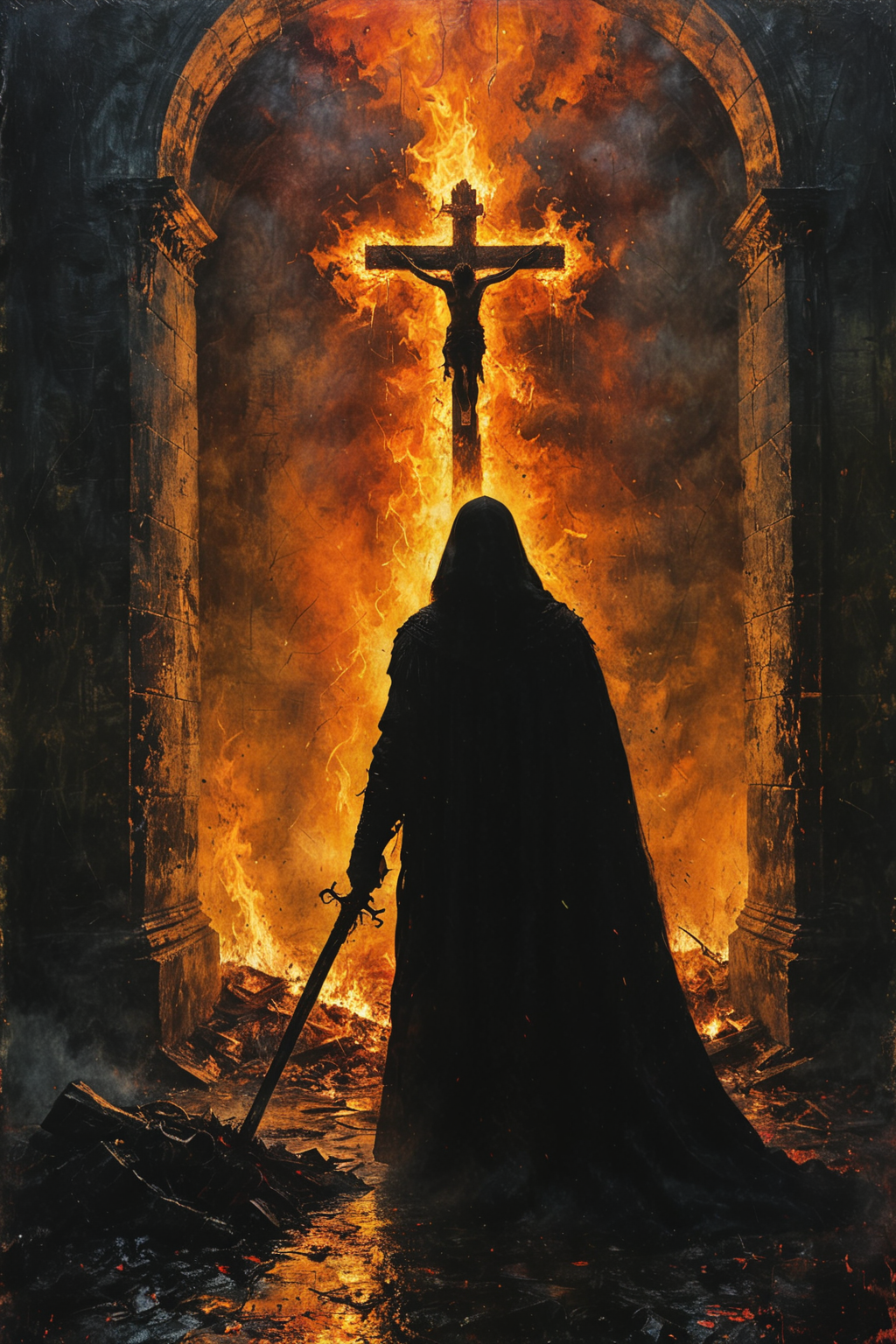 Watch out What will it take to get it into your head? A street painted blood, a climate of dread Yeah, you want it all Fear, for the faithful Fire, fuel the rage Faith, in your profits It's all Hate from the pulpit Acid in the rain Blood on the altar It's all Fear, fire and faith What will it take to clear the fog from your sight? The prism of profit warps the purest of mind Oh, you want it all It's all the same sad mantra But I won't, I refuse, I refuse to Repeat it Imperial heretic, oh 'Cause you want it all You want it all best quality, masterpiece, absurdres, renaissance, inquisition, fantasy, church, evil preacher, heretic, dark gospel <lora:Desolation:0.45> <lora:Lost_In_Dreams:0.45>