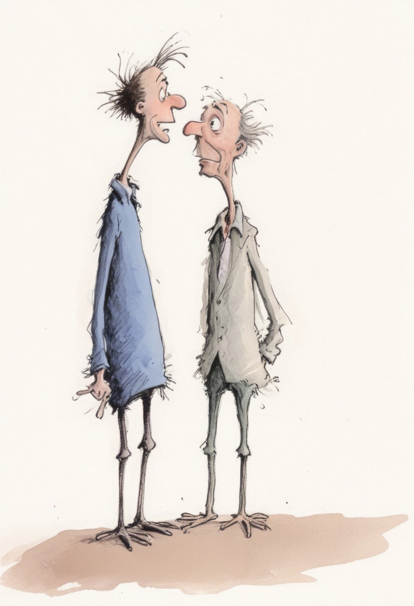 <lora:Quentin Blake Style:1>Quentin Blake Style - Quentin Blake illustration of a talking person standing