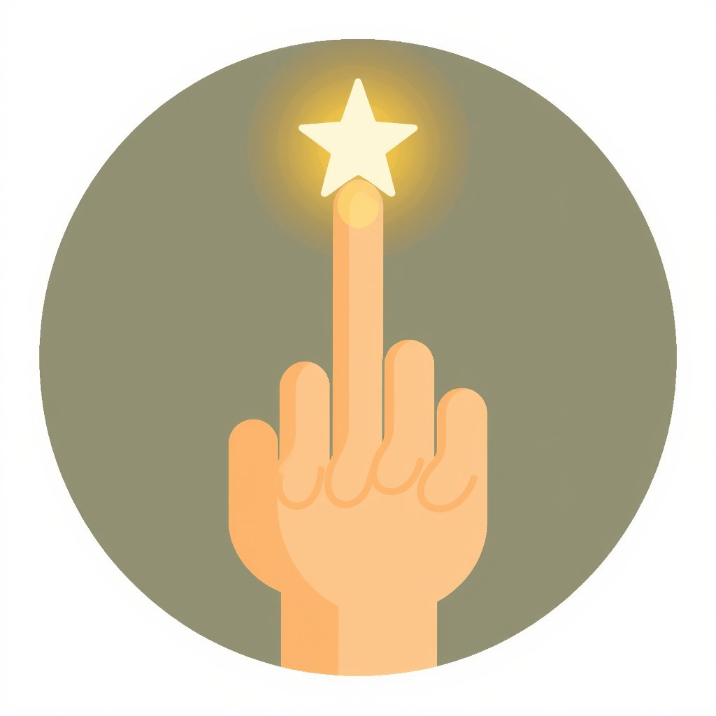 A illustration of an icon of a bold, A like icon that has a shining star effect above the like finger and is placed in a circle frame whose color is close to the skin of white people. The like symbol has a bright color and all the details of the hand can be seen clearly.