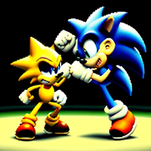 Super Mario and Sonic the Hedgehog fist fighting, health bars, flat lighting, low resolution, epic win, <lora:N64_Game_Style_F1DFULL:1.4>