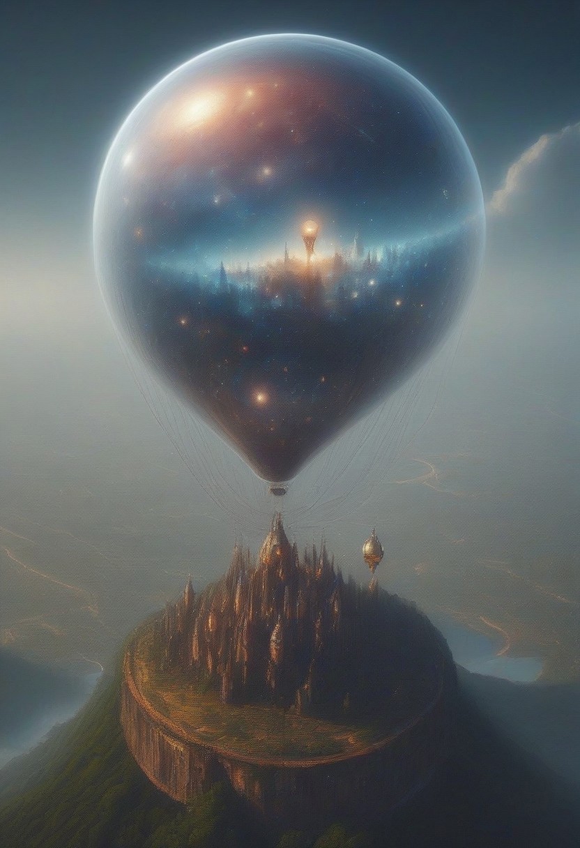 <lora:CosmicStyleSDXL:1.4>CosmicStyle (Hot air balloon, steampunk design, floating above, Victorian city, gears, steam, brass, copper, clockworks, ruins, lost civilization, ancient architecture, overgrown, jungle, greenery, atmosphere, dramatic, evening, warm, golden light, sunset, clouds, blue sky, detailed, vibrant, dynamic, intricate, immersive, captivating, painting, realistic, oil painting, epic, grand, adventure, exploration, mystery, alluring, enchanting, captivating, evocative, inspiring, breathtaking:0.5), see-through, transparent