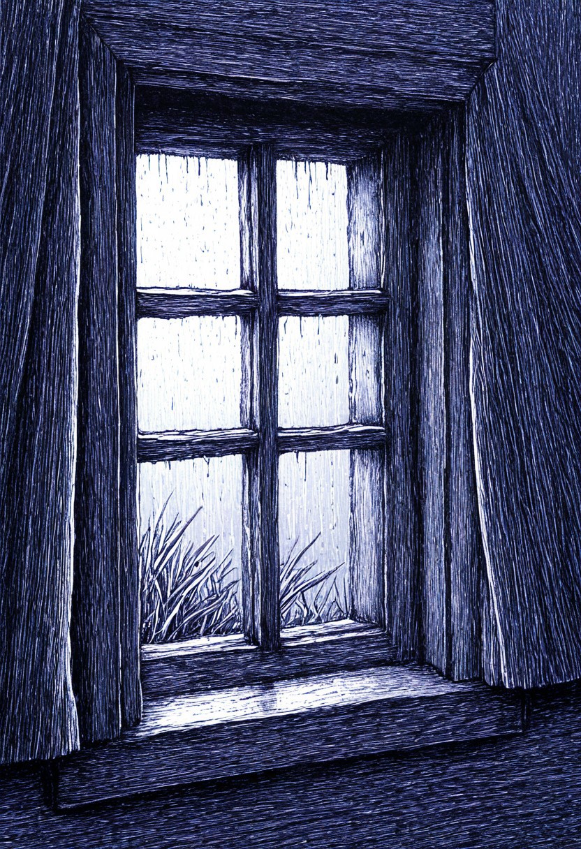 novuschroma42 style, ballpoint pen drawing, lineart, monochrome, skanzen, BREAK, long nails, dark hands, night, scratching a window from outside, rain
