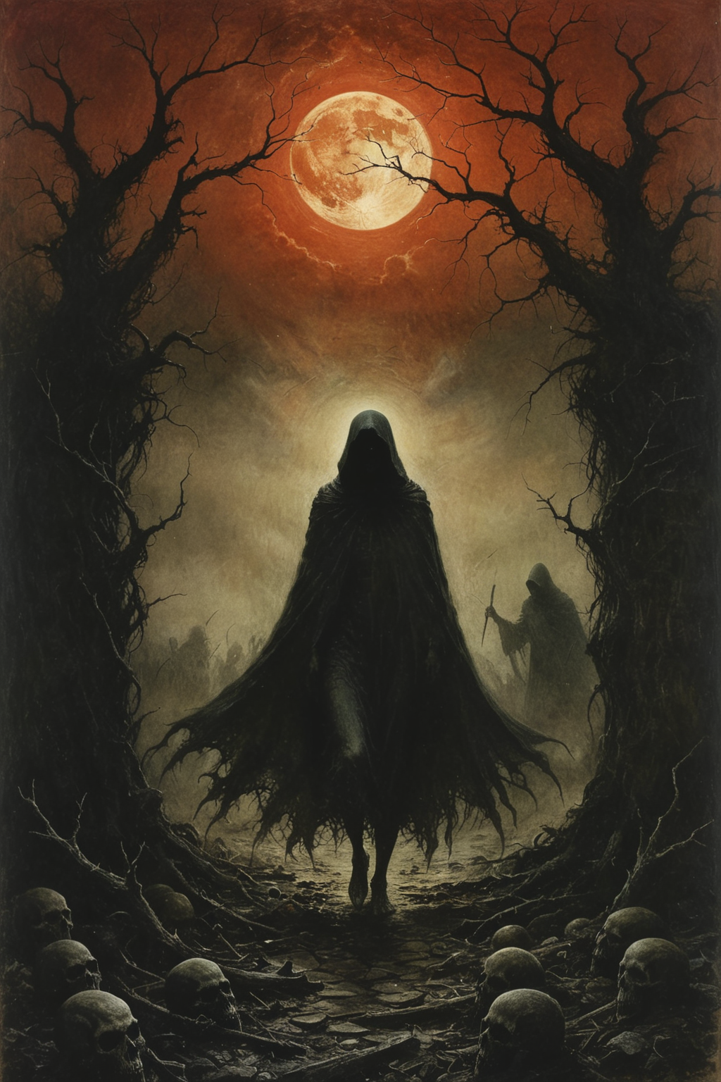 running through maze of despair every choise leads who knows where but here is no fear to stop ill make my step story unfolds never the same cant find the way break out the thing feel the pressure no way in no way out play the twisted turn again playing to lose for win cant break through stuck in place but face it all with steady will female assassin, solo focus, dreamless eyes, cloak, hat with feather, epee, in the valley of death, I will fear no evil, gates of hell is open, monster comes out of the gate, monster horde, lurking monsters on background, monster silhouettes, monster crowd, swirling shadows, battle, beat the normality, to tap the core of insanity, to nothingness and back again, layers epic, dynamic composition, in motion, best quality, masterpiece, absurdes, dark fantasy, dark souls, bloodborne, Hidetaka Miyazaki, illustration, painting, victorian, impressionism, gothic, (lithography, infrared, ferrotype:0.5), hyperdetailed, colorful, horror \(theme\), dramatic lighting, red moon, detailed background <lora:Edward Gorey Style:0.5> Edward Gorey Style page <lora:NicolaSamori:0.35> <lora:Desolation:0.35> <lora:sdxl_lora_beksinski:0.35> digital artwork by Beksinski