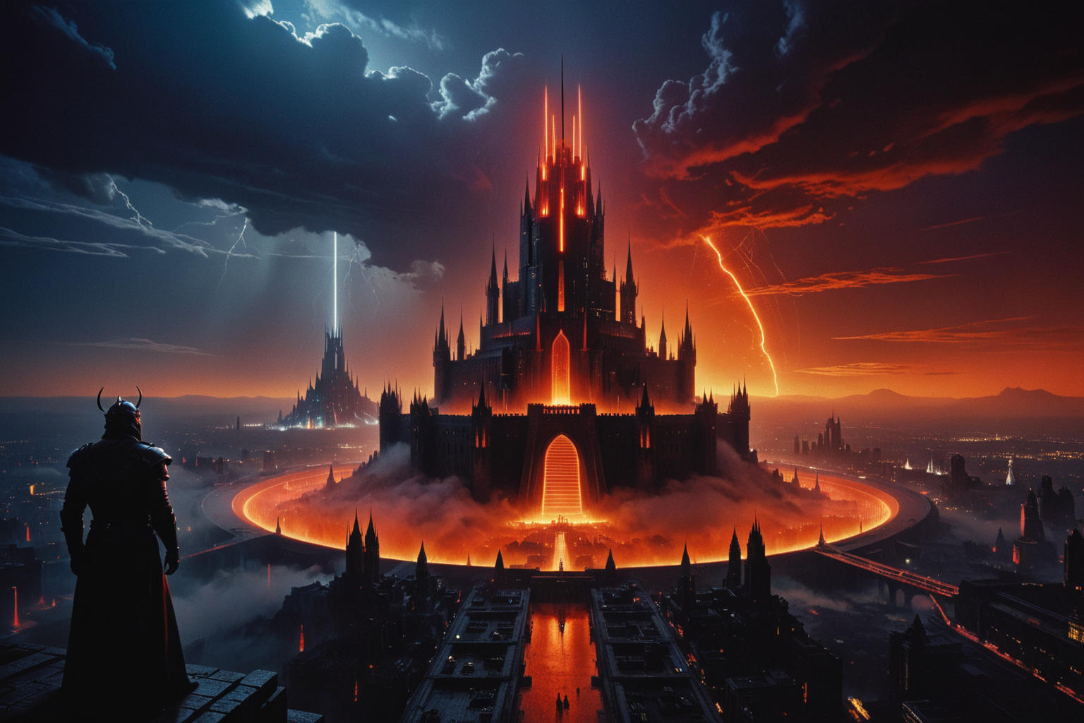 giant tall (sauron castle:1.2), in foreground, domination in the scene, science fiction, cyberpunk, noir, futuristic, science fiction gothic, sci fantasy mix, neon, energy sparks, light particles, city in the year 2543, dark building, megastructure, skyline, best quality, high angle, dramatic contrast sky, fog, rain, hdr, cinematic, film grain, ridley scott, nihei tsutomu, Adolph Gottlieb, Seth Ickerman, mamoru oshii, (close-up:1.5), zoomed, epic scale, grandeur, colossal, primary colors, no gradients, red color guide, giant eye in sky, mesmerizing, outstanding, visionary, exquisite <lora:Kodak Motion Picture Film Style v5_2:0.6> Kodak Motion Picture Film Style <lora:CinematicStyle_v1:0.4> <lora:Neon_Noir_SDXL:0.5> mad-neon-noir <lora:RMSDXL_Creative:0.5> <lora:EldritchCandids1.1.2:0.45> <lora:John Harris Style:0.45> John Harris Style page