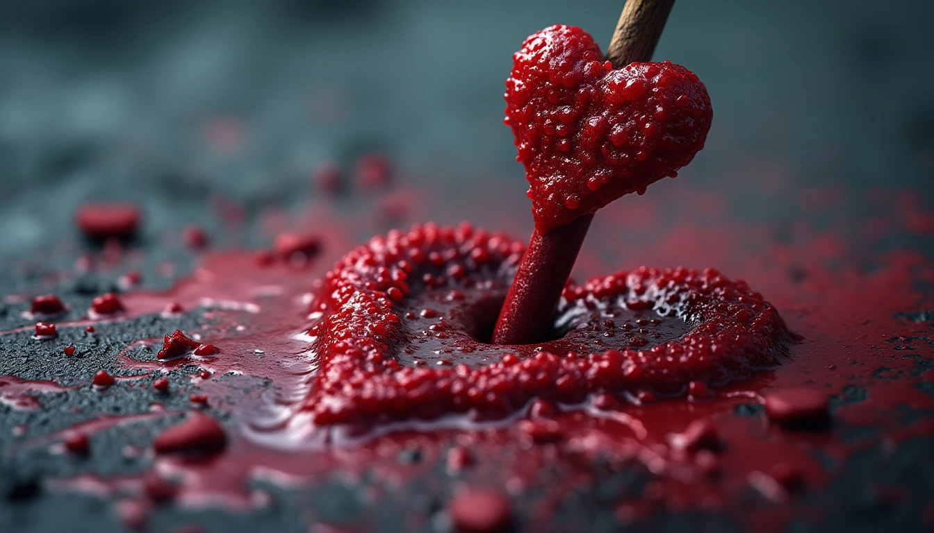 a stake penetrating a heart, the image must be realistic with lush vibrant colors