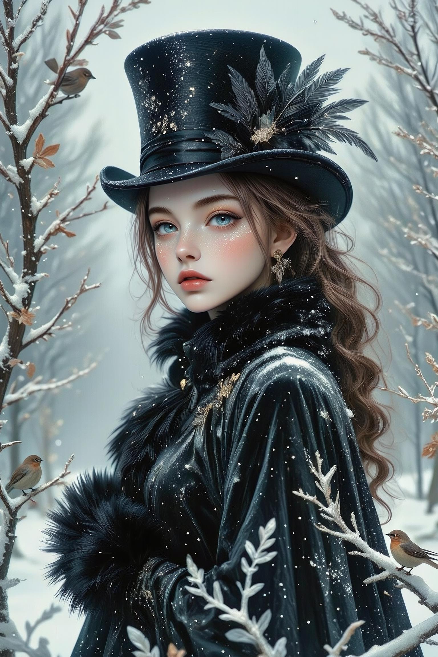 A gothic, high-contrast portrait of a noblewoman standing in a frozen, surreal winter landscape. <lora:Dever_Flux_Enhancer:0.5> <lora:midjourney_whisper_flux_lora_v01:0.65> Midjourney_Whisper <lora:zavy-drkcnmtc-fxl:0.75> zavy-drkcnmtc <lora:Midjourney_-_SemiReal_Dreams_FLUX_LoRA:0.7> <lora:Dreamy_Illustrations_FLUX_LoRA-000001:0.65>