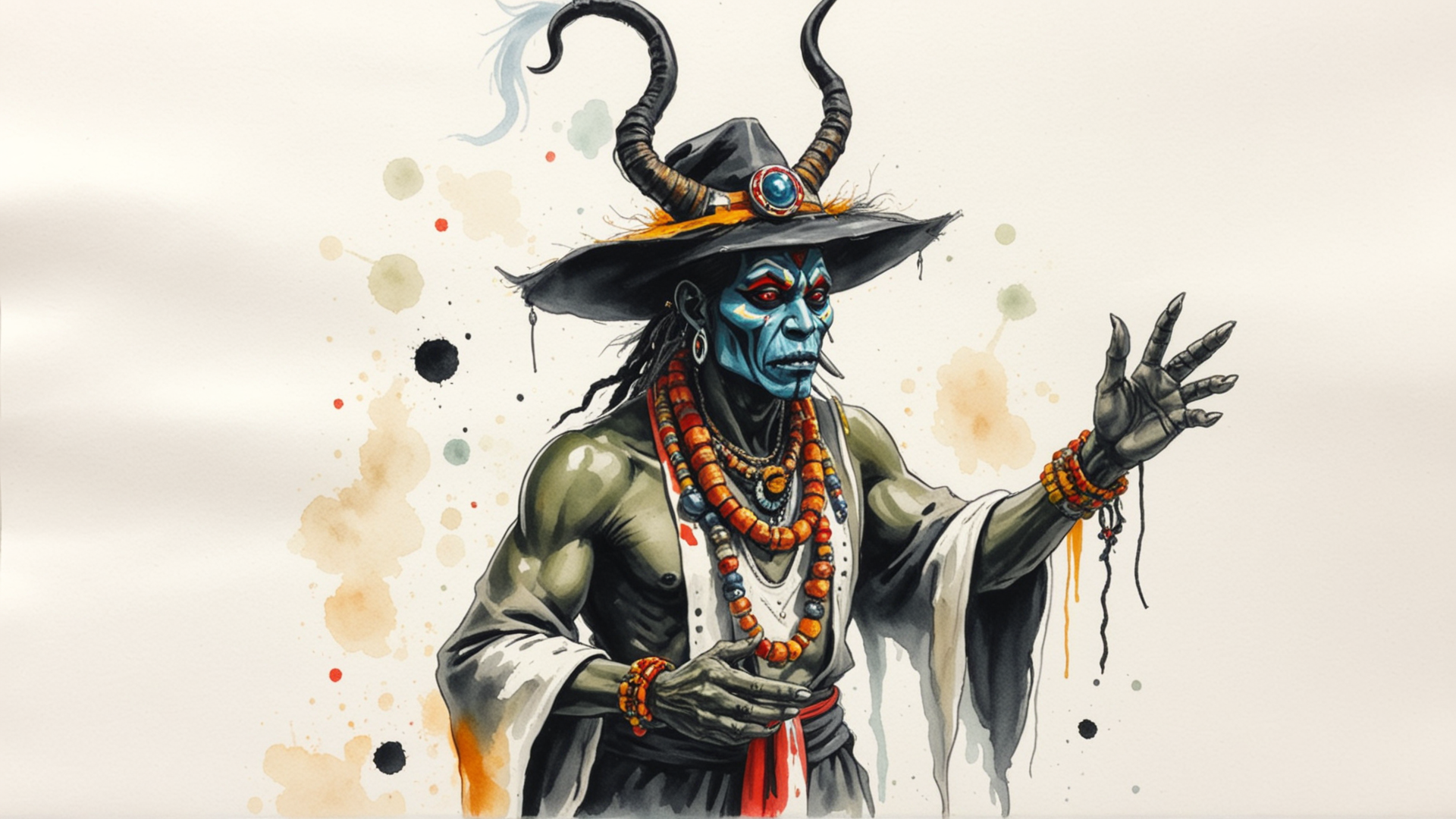 <lora:ColorInkSplatStyleSDXL:1>ColorInkSplatStyle a witch doctor calling upon spirits for guidance, white background