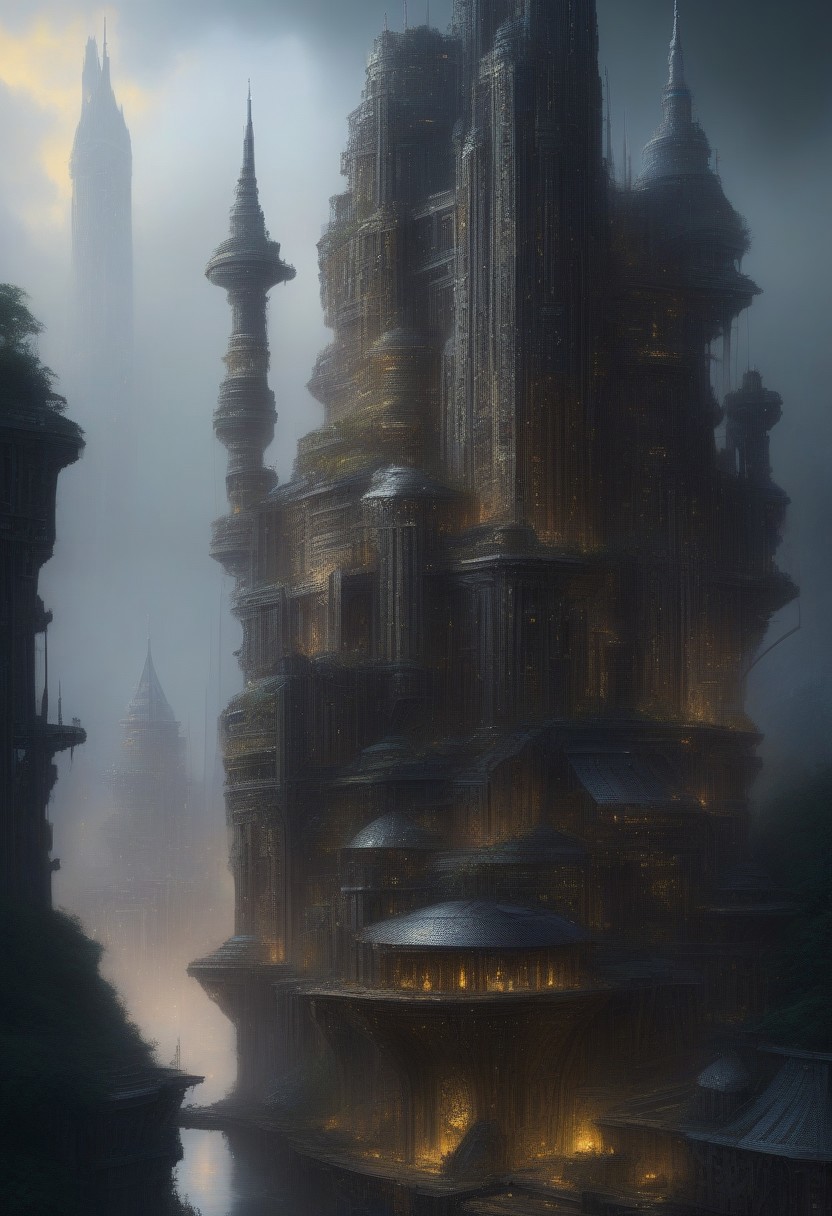<lora:SS02ImpressionisticPainting_Hap_XL:1.7>,Thomas Kinkade style, <lora:add-detail-xl:0.1> A dark and eerie technologically advanded technocastle with high towers and spooky surroundings., Miki Asai Macro photography, close-up, hyper detailed, trending on artstation, sharp focus, studio photo, intricate details, highly detailed, by greg rutkowski, technobrutalist