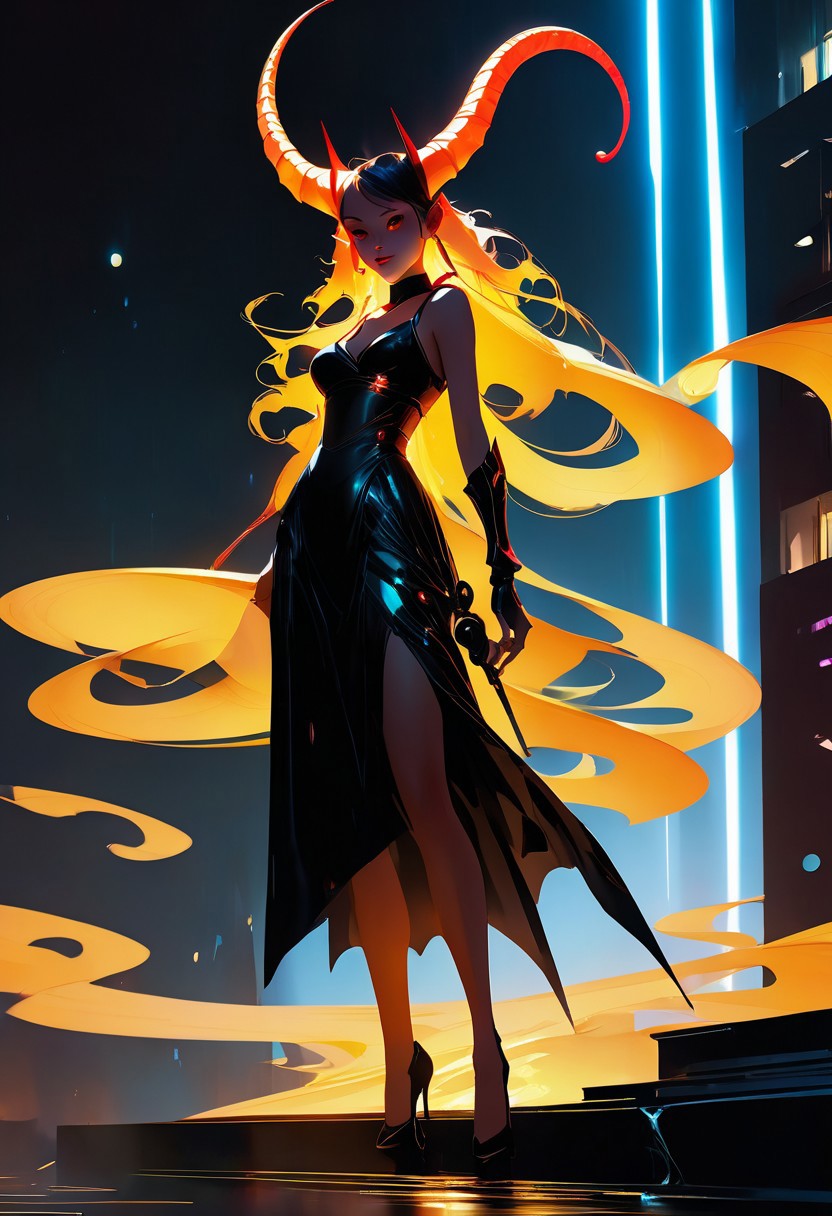 score_9, score_8_up, score_8_up, ((Cinematic composition)),((masterpiece)), (resplendent lighting), absurdres, very fine detail, 8k. (1girl, beautiful girl, ((full body)) right-half demon with a horn) in an action combat pose, summoning glowing spheres of magic, colourful lights swirl in orbit around her, sly smile. Revealing clothing, futuristic, layered fashion. Beautiful and dangerous atmosphere. Though strap. Standing in water gushing like waterfalls from high up the building. Resplendent spotlight highlighting, cinematic composition and lighting. Masterpiece.