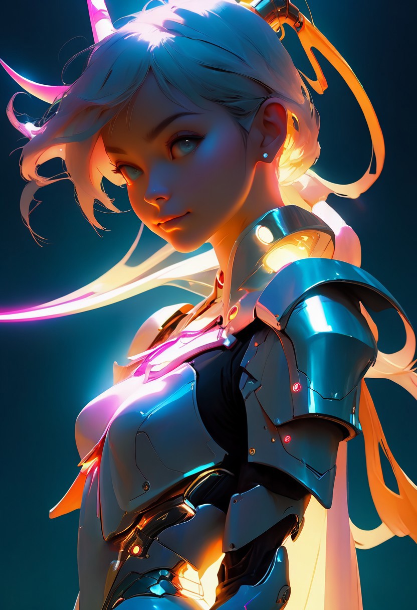 score_9, score_8_up, score_8_up, ((Cinematic composition)),((masterpiece)), (resplendent lighting), absurdres, very fine detail, 8k. (1girl, beautiful girl, ((full body)) futuristic left-half-cyborg and right-side-demon with a horn) in an action combat pose, summoning glowing spheres of magic, colourful lights swirl in orbit around her, sly smile. Revealing clothing, futuristic, layered. Beautiful and dangerous atmosphere. Standing in water gushing like waterfalls from high up the building. Resplendent spotlight highlighting, cinematic composition and lighting. Masterpiece.