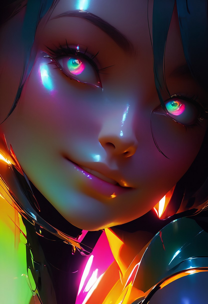 score_9, score_8_up, score_8_up, ((Cinematic composition)),((masterpiece)), (resplendent lighting), absurdres, very fine detail, 8k. (1girl, beautiful girl, ((full body)) futuristic left-half-cyborg and right-side-demon with a horn) in an action combat pose, summoning glowing spheres of magic, colourful lights swirl in orbit around her, sly smile. Revealing clothing, futuristic, layered. Beautiful and dangerous atmosphere. Standing in water gushing like waterfalls from high up the building. Resplendent spotlight highlighting, cinematic composition and lighting. Masterpiece.