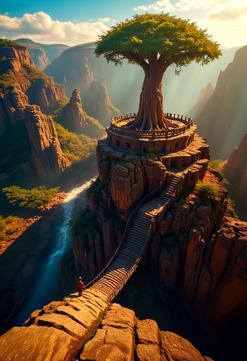 ultra HD, high quality, 4K, score_9, score_8_up, score_7_up, photo, extremely detailed, 8k, high quality, Source_photo, real photo, sharp, highly detailed and hyper realistic, masterpiece, masterpiece, best quality, vivid colors, high quality, RAW photo, masterpiece, best quality, 4k, giant tree planted from deep canyon surrounded ancient temple, light, blue sky, epic, cinematic colors, good rays, , detailmaximizer, midjourneyv6.1, on top of rock hills, high angle, small dragons flying around tree, flux-style, midjourneyv6.1