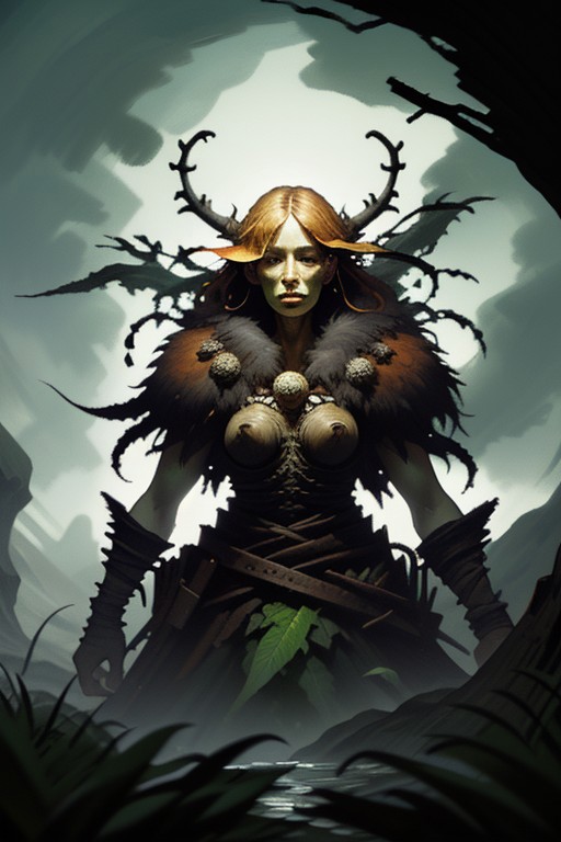 score_9, score_8_up, 8, score_7_up, score_6_up, solo, wizardcoreai, druidic, torso shot of a stunning Irish woman with a tired expression (fully clothed in natural leather, leaves, furs, no metal armor, wooden staff) looking up, botanical-champion, elf women, pale white skin, nature themed clothing, blending of leaves with metal, ginger hair, wading, tranquil river, waterfall, green druid tattoos, magical energy radiating, plant overgrowth,particle effects, enchanted field in background, colourful mushrooms, lightning crackling, shadowy backdrop, fantasy atmosphere, <lora:WizardCoreAIp:0.6> BREAK stunning beauty, detailed skin, skin texture, skin pores, (freckles:0.45). 8k, uhd, insane details, photorealism painting, realistic body, realistic eyes, realistic anatomy, cinematic lighting, (rim lighting, side lighting:1.4), bokeh, 4K, triadic colors dutch angle, 60 year old, BREAK leaf clothing, leaf full sleeved shirt, leaf skirt, leather armor, BREAK oil painting, BadDream, druid, negative_hand, NEG_EMBED_STABLE_YOGI_V3, FastNegativeV2, AissistV2