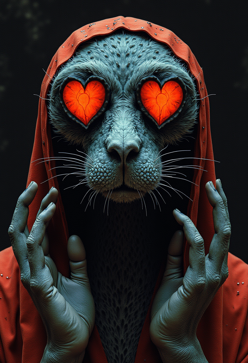 dark art by Virgil Finlay, Enthralling A SLOW LORIS wearing a Heart-Shaped Eyes, Science fiction and fantasy art, pulp magazine illustrations, intricate detail, dark atmospheres, imaginative creatures, no human, whismical, illustrious quality, deep aesthetic, vivid colors, very, perfect background