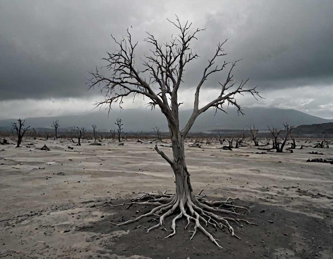 A dead tree, sanding alone in a wasteland of volcanic ash under a gray sky <lora:Photo Style SDXL_LoRA_20r_10e_22i_nr32_a16_Pony Diffusion V6 XL:1>