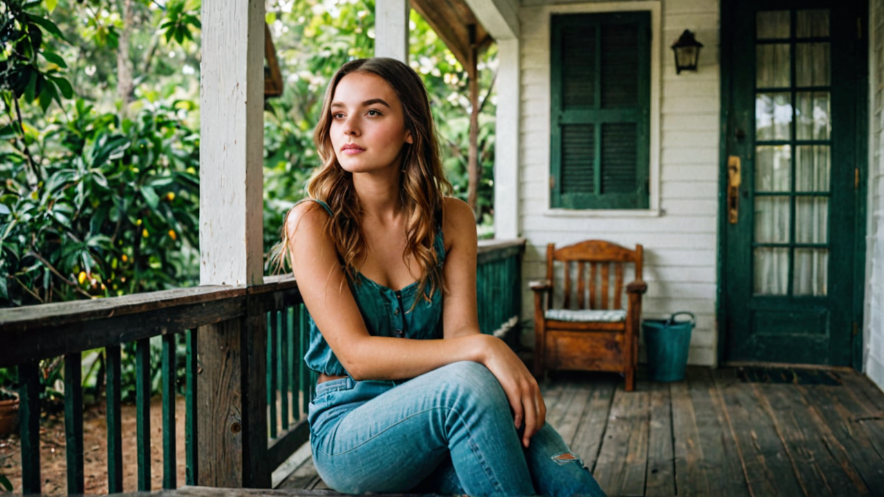 photograph Beautiful girl sitting in the porch, 50mm . cinematic 4k epic detailed 4k epic detailed photograph shot on kodak detailed cinematic hbo dark moody, 35mm photo, grainy, vignette, vintage, Kodachrome, Lomography, stained, highly detailed, found footage, Beautiful girl sitting in the porch, bright colors, cute, lush, dramatic light, cinematic, highly detailed, professional, clear focus, calm, beautiful, charming, intricate, expressive, attractive, pretty, delicate, friendly, best, novel, very coherent, colorful, inspired, vibrant, background, illuminated, incredible, thought, epic, stunning, gorgeous, creative