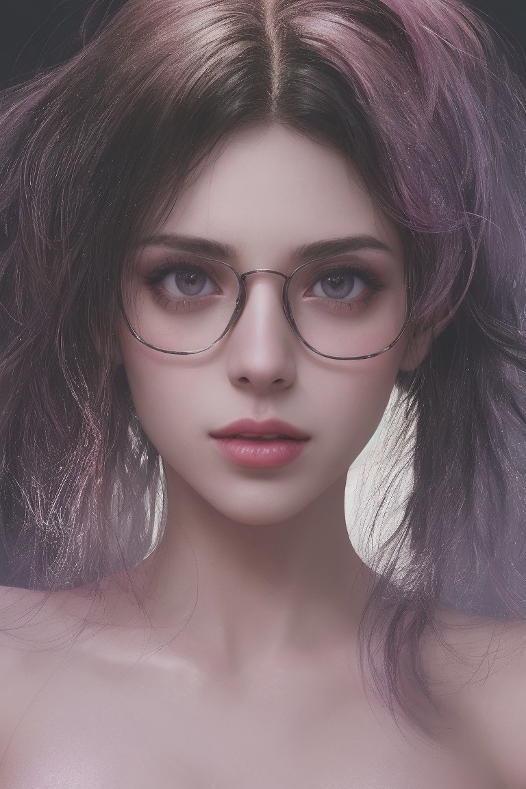safe_pos, Neon-lit close-up, A hyper-realistic close-up of a beauty supermodel sexy girl face, big lips, bathed in neon pink and purple light with glittering particles on her skin, neon sunglasses with glitter textures patterns, fashion magazine style, beautiful background, Use soft colors and a shallow depth of field