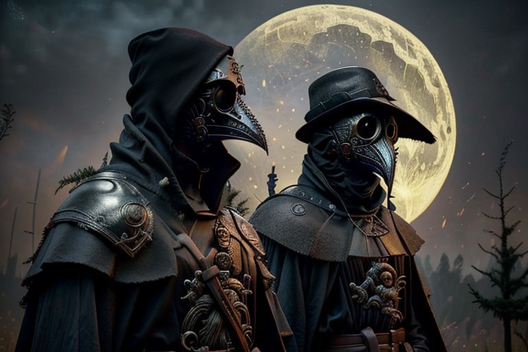 Style: Van Gogh's Starry Night, Expressionism Vibes: Gloomy, Dark Tones, Emotional Depth Themes: Dark Fantasy, Fantasy Quality: Vibrant Masterpiece, 8k, UHD, Very Detailed, High-Quality, Best Artist, Sharp Edges, Detailed Textures, Full View, Atmospheric Lighting, Stunning Visuals Elements: Surreal, Iron Maiden Knight with metal spikes all over body, Mechanical Eldritch Samurai with an oversized sword, Plague doctor, mask View:Side view, staring into the distance Background: Exotic vegetation, Pink and yellow sun in the background Influences: Norman Rockwell, Greg Hildebrandt, Tristan Eaton, Victo Ngai, Greg Rutkowski, Beksinski Color Scheme:Triadic, Vibrant Colors Mood: Staring into the void, high contrast Miscellaneous: A still from the film Alien, Eldritch machines, Biomechanical Additional Enhancements:<lora:MJ52:0.5> <lora:add-detail-xl:1> <lora:ral-ertmsphr:0.5>
