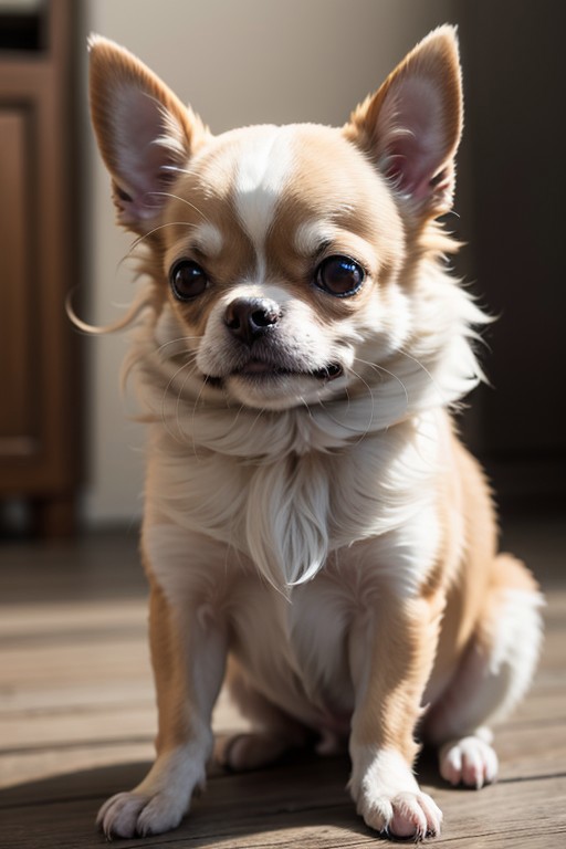 Hard-boiled long-coated chihuahua, (masterpiece, best quality:1.4), ultra-high res, 4k, 8k, insanely detailed, insanely beautiful, perfect finish,