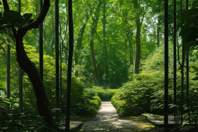 (masterpiece), detailed background, highly detailed, dynamic angles, (no_humans), no humans, sunlight filtering, sunlight, sunlight_filtering, sun shining, bokeh, depth of field, outdoors, canopy, treetops, leaves, vines, forest, green_theme, 5TR1P3XL
