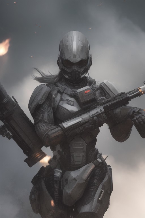 masterpiece, UHD, 8K, best quality, super detailed, battle, afternoon, close up shot, dynamic angles, sharp, practical lighting, best light, focus with blurred background, war, fighting, Skeletal Battle Suit, gun, assault rifle, shoulder weapon, missile pod, ((gunfight, gun action, gunfight, holding a gun with both hands)), ((flames and smoke rise from the nozzle every time a bullet is fired from an assault rifle, and the weapon shakes due to recoil)), ((nozzle flash, nozzle firing)), sci-fi, motion blur, realistic, combat, explosion, firing, dirt, sea spray, sparks, missile pod, twin launcher, shoulder weapon, rail gun, grenade launcher, no humans, Battle Suit, Assault rifle