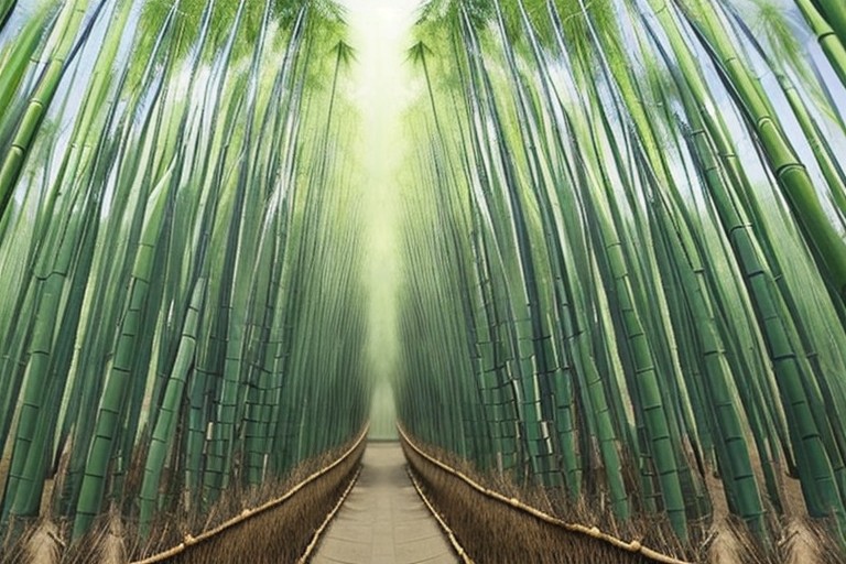 realistic, viewing straight ahead, bamboo forest, densely packed bamboos