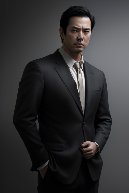 best quality,masterpiece,(realistic:1.2)quality,realistic,masterpiece,Highly detailed,1boy,office man,adult,asian,black hair,suit,standing,hand in pocket,grey_background,moody lighting,full_shot,frontlight,highres,absurdres,incredibly_absurdres,huge_filesize,