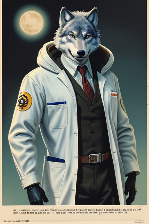 vintage_sci-fi an anthropomorphic wolf dressed as a technician or scientist