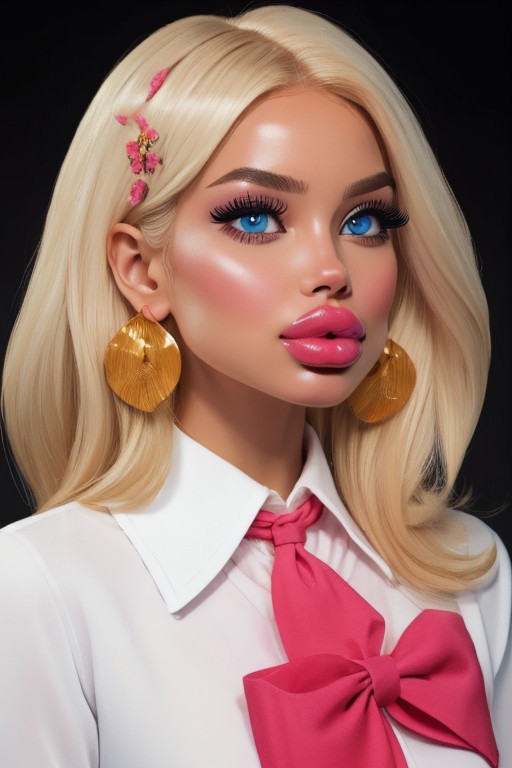 (masterpiece, best quality:1.9), <lora:thepit:1.7>, thepit, 1girl, breasts, solo, white nails, jewelry, earrings, hair ornament, flower, long hair, black background, perfect plump lips, cleavage, large breasts, hair flower, bra, blue eyes, white hair, simple background, looking at viewer, upper body, naval, supple skin, bow in hair, thick dark eyebrows, thick mascara, dark thick eyeliner, bimbo doll, dimples, blush, thin sheer shirt, bimbo doll, pout, pouty face, bra, glamour model, big tits, bimbo, doll, school uniform, unbuttoned blouse, open blouse, grade A student, botox, super high sex appeal, eyes, mouth, closed mouth, opaque matte lip application, beauty mark, bimbofied, bimbofication, secretive, perceptive, eyelashes, accentuated beauty, sharp focus, european fashion, vibrant colors, glowing skin, lipliner, glowing skin, vibrant skin, beauty mark, breast expansion, detailed lips, detailed mouth, porn star, actress, movie-star, wide-eyed, white hair, fair skin, tan, tanned, columbian, colored, detailed hair, ultra high def, uhd, 8k, voluptuous mouth, sensuous features, highly attractive, bosom, emotive eyes, startling look, fair skin, detailed skin, long eyelashes, full eyelashes, bedroom eyes, rhinoplasty,