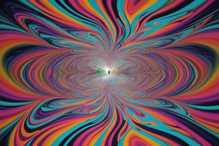 As the painter works on the mural, they are creating a surreal, psychedelic image, with swirling colors and patterns that seem to ripple and move as the viewer looks at it. The scene has an alternative, indie film vibe, with a sense of creativity and rebellion.