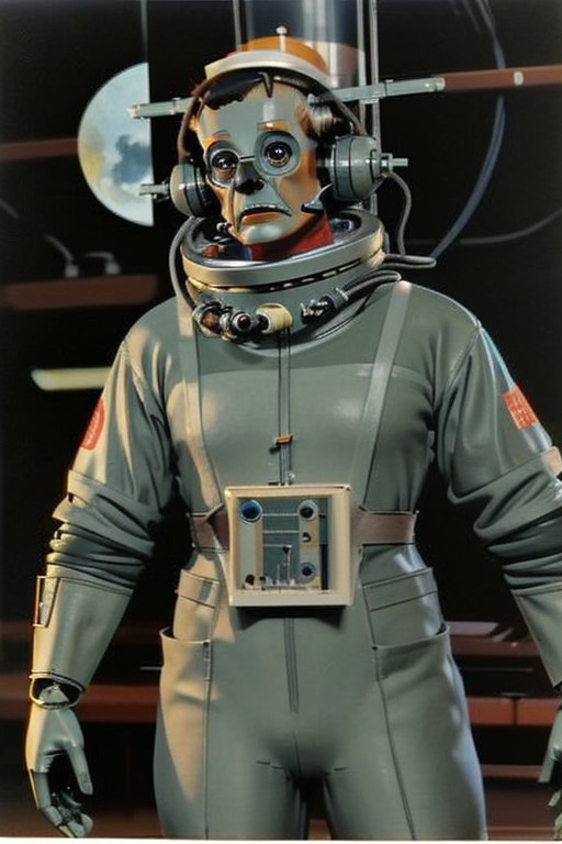 vintage_sci-fi an anthropomorphic wolf dressed as a technician or scientist
