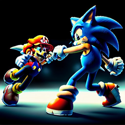(Super Mario) and (Sonic the Hedgehog) fist fighting, health bars, epic lighting, state of the art graphics, next gen graphics, playstation6, epic resolution, sonic's raw power, mario's hero spirit, epic win, awsomesauce, epic battle , mature,