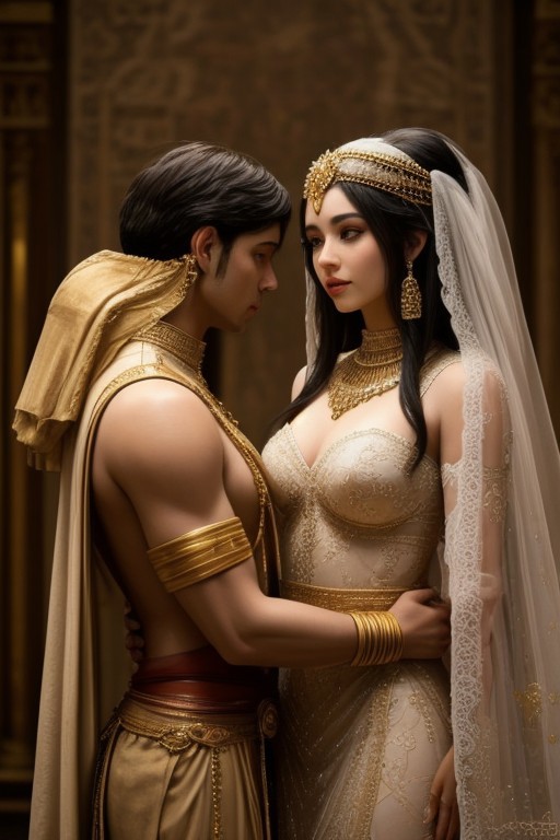 An Egyptian female pharaoh met with a Roman emperor, and they fell in love at first sight and got married. FHD, Rich in details, masterpiece, realistic style.