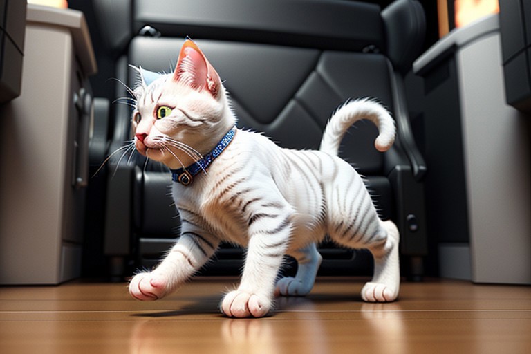 Capture a full hyper-realistic photograph of an adorable white kitten running in a cinema, cutest in civitai, side view, chubby cat, close up, c4d, blender, raytracing, unreal engine 5, render 3d,