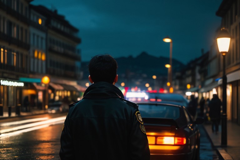 Geneva city, by night, dramatic, complex background, cinematic, filmic, soaking wet, blurry, (poor quality photo: 1.4), , best quality,<lora:add_detail:1.1>, street anamorphic bokeh, city street at dusk, ultra shallow depth of field, urban patrol, lampposts, cars, heavy blur, shallow depth of field, vignette, Mise-en-scene, detailed, cinemascope, moody, epic, film