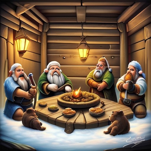 group of dwarfs drinking bear, dwarf, dwarvenstyle, merry celebration