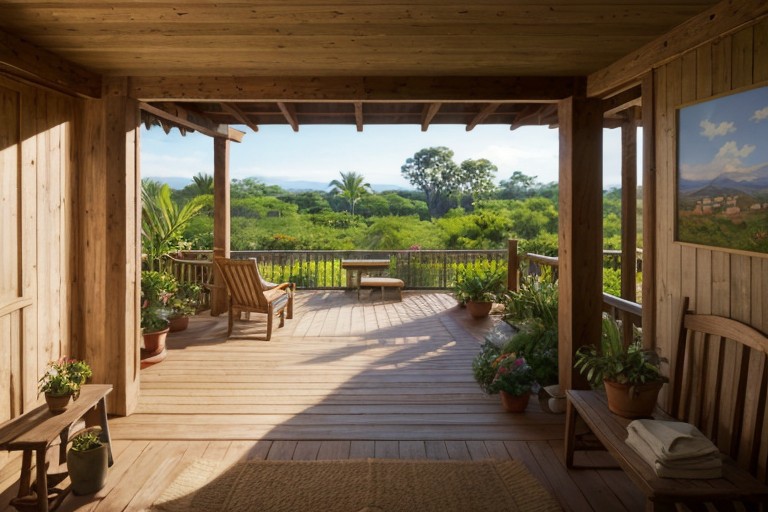 Japandi tropico gardens house, style: timeless minimalism, earthy tones, raw textures, serene simplicity, natural light, harmonious asymmetry, curated antiquities, architectural restoration, tranquil, contemplative, historical modernity, parameters: top view, house overview, -- ar 15:9, (Ultra Realistic:1.0),32k,(Masterpiece:1.0),(High Detailed Skin:1.0),( High Quality:1.0), (Detailed Realistic Background:1.3), (Official Art, Beautiful and Aesthetic:1.2), (Realistic Lighting:1.0),