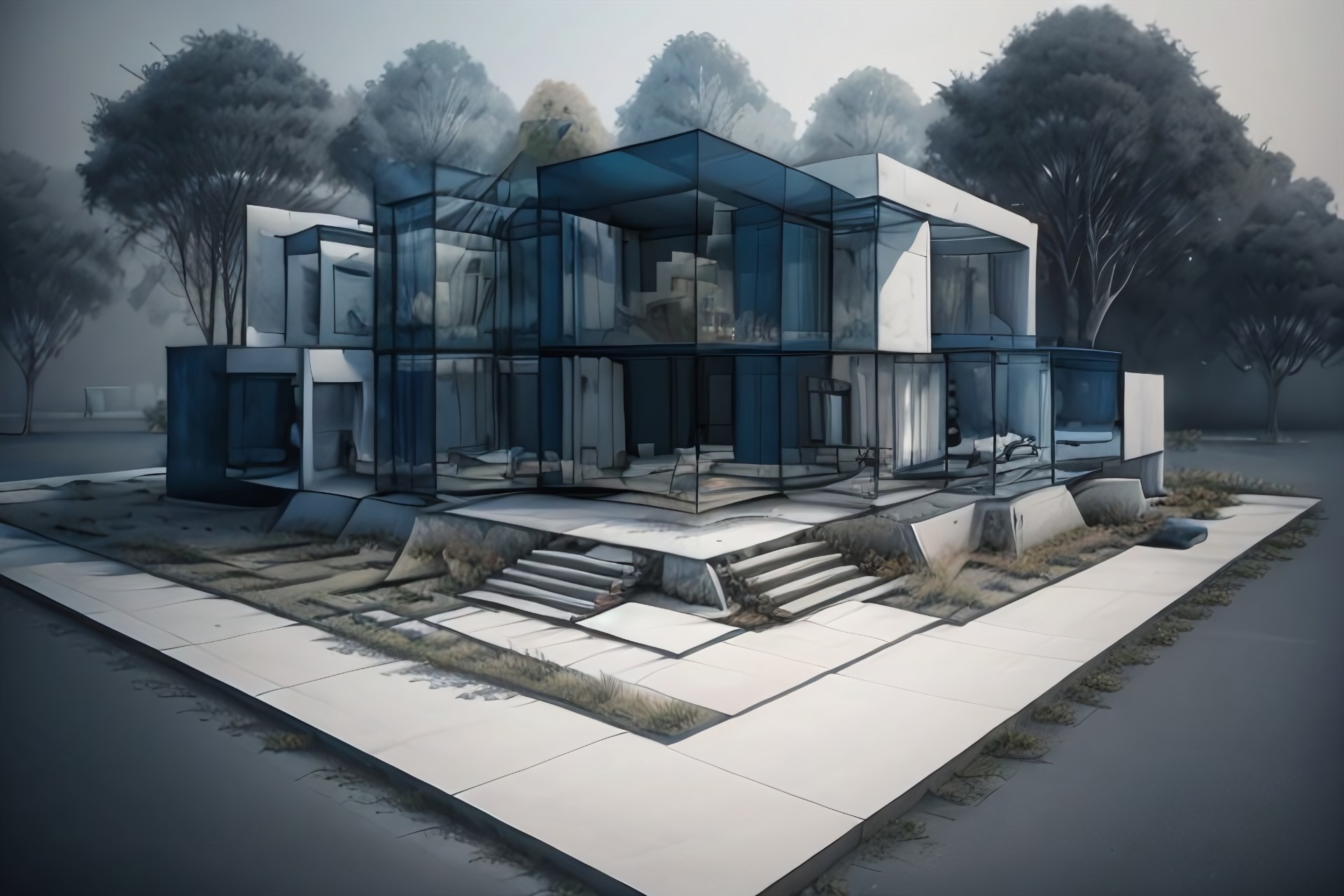 Modernized Minimal tropico gardens house, style: timeless minimalism, earthy tones, raw textures, serene simplicity, natural light, harmonious asymmetry, curated antiquities, architectural restoration, tranquil, contemplative, historical modernity, parameters: top view, house overview, -- ar 15:9, (Ultra Realistic:1.0),32k,(Masterpiece:1.0),(High Detailed Skin:1.0),( High Quality:1.0), (Detailed Realistic Background:1.3), (Official Art, Beautiful and Aesthetic:1.2), (Realistic Lighting:1.0),