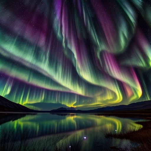 aurora borealis over a lake?! vibrant aurora borealis